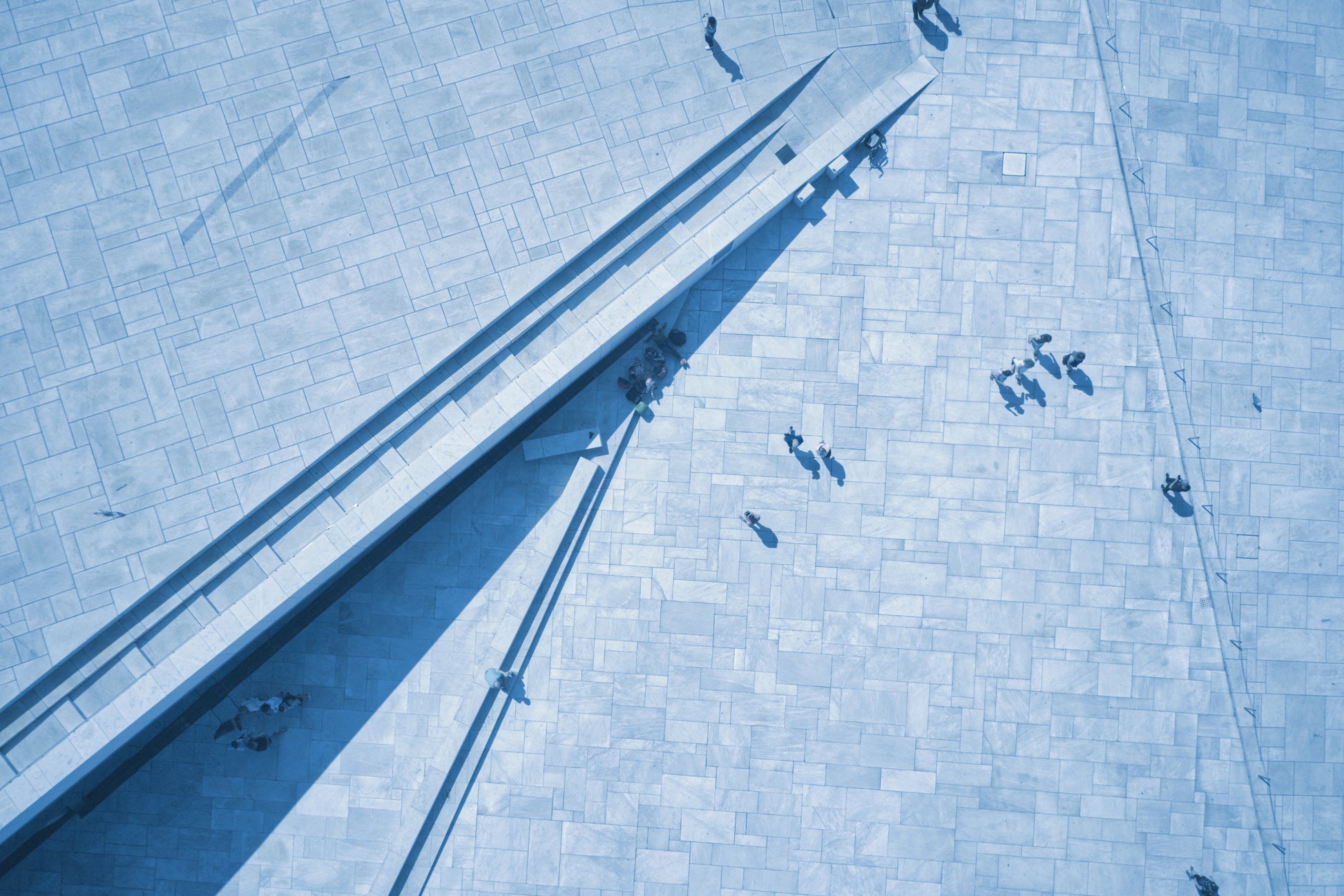 Seen from above, the Oslo Opera House captivates even in monochrome. Its sharp angles echo the peaks and valleys of the surrounding landscape against steely grey skies. The sweeping white marble roof flows downward, as if the very earth has erupted in an ice cream swirl of texture and light.